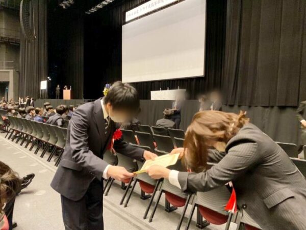 所沢キャンパスからも卒業生が参列し、いつもよりビシッと決めた卒業生に、キャンパス長から卒業証書が授与されました。
