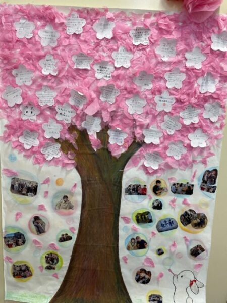 会場には在校生・講師・スタッフから桜のメッセージが掲示されました♪