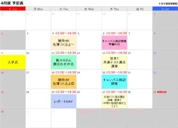 4月のHRの内容が決まりました!来月は、温かくなってきたのでキャンパスを出て近くをお散歩するHRもあります♪運動不足だなと思う方必見ですね👀☆彡