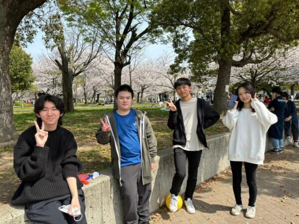 というわけで、キャンパスに居た子に声を掛けてお花見してきました!