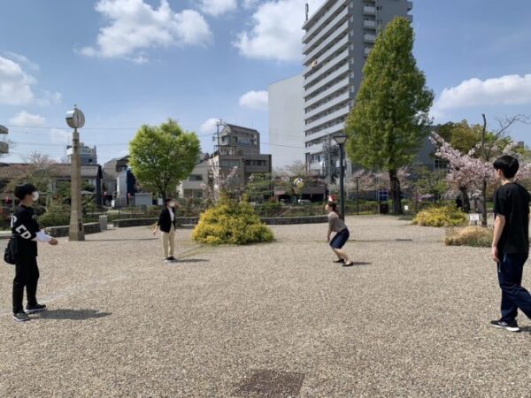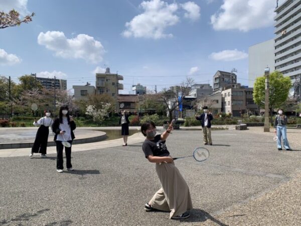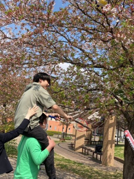 公園に着いたら、まず2つのチームに分かれてバドミントンとバレーボールで遊びました🏸🏐
