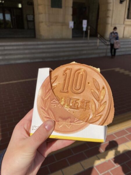 今話題の10円パンを見つけ、みんなで分け合って食べました。☺
