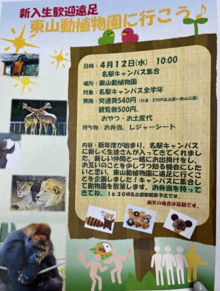 明日は新入生歓迎遠足で、東山動植物園に行きます🐻🐼🐨🐯🦁