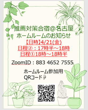 興味ある方はぜひ推薦対策合宿@名古屋 ホームルームにご参加ください!