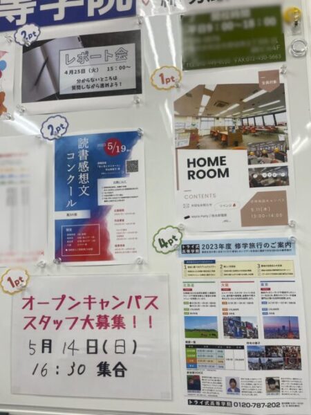 そんな生徒のみなさんを後押しするイベントポイント制度!たくさん参加して景品をGETしてくださいね!!