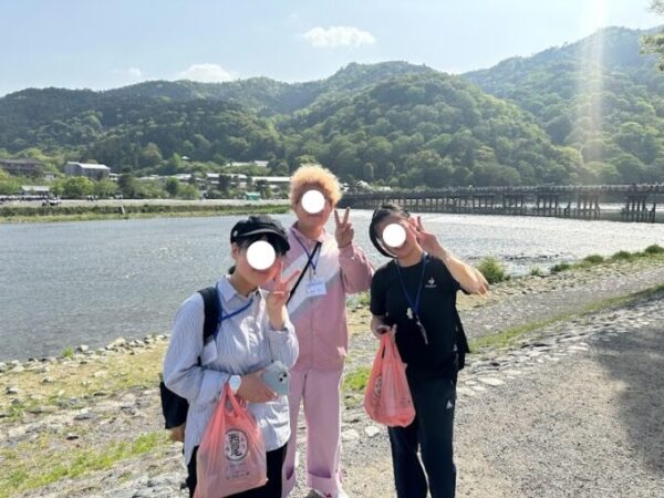 野外組・屋内組に分かれてのアクティビティ、嵐山での自由散策など、