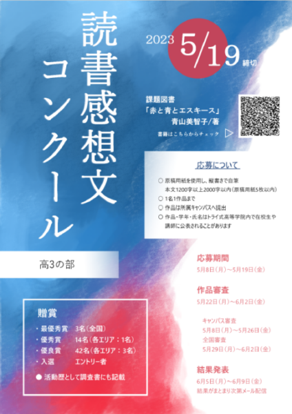 本日は高校3年生対象の読書感想文コンクールのお知らせです。