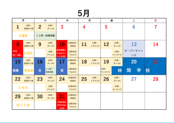 31日(水) 13:00~久留米フェスティバル(お楽しみ会)