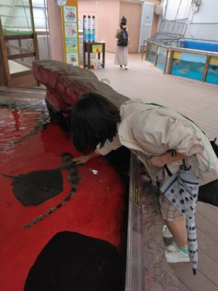 おしゃべりを楽しんだり、お気に入りの魚を見つけたり、サメを触ったり😄