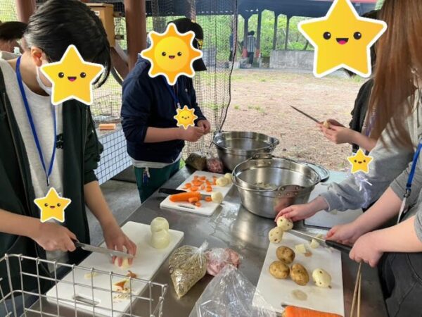 屋外での夕食づくりではみんなでカレーを作って食べました。
