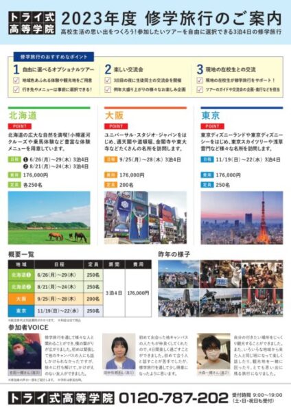 高校生活の思い出作りに、それぞれの成長に、この修学旅行が何かのきっかけになることは間違いないでしょう!