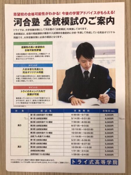 高2生対象の 第1回全統高2模試以降のお申込みは、受け付けておりますので、