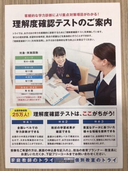 また、トライの理解度確認テストについても、引き続き、お申込みが出来ますので、