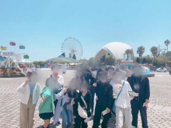 凱旋門や万里の長城など世界の有名な建物が25分の1サイズで集合する国際色豊かな園内で、生徒たちはフォトジェニックな旅写真を笑顔で撮っていました。