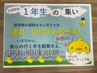 「1年生の集い」第1回目は5月19日(金)11:00~