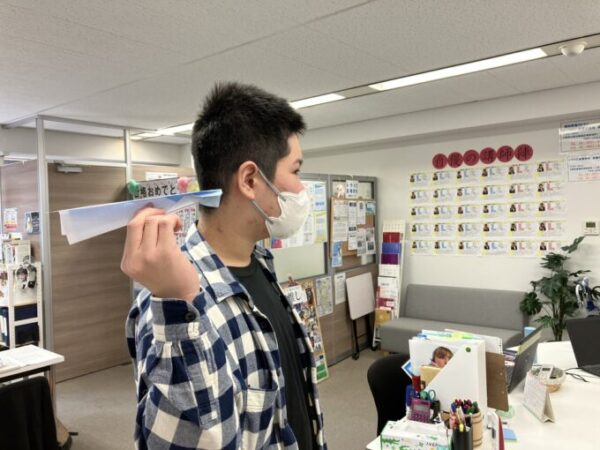 先日、みんなでリフレッシュタイム「紙飛行機飛ばし大会」を開催しました!
