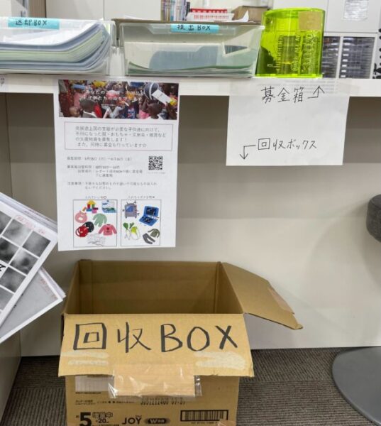 【場所】募金箱-キャンパス内のレポート提出boxの横
