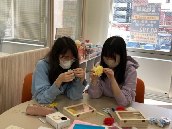 5月11日(木)に岐阜キャンパスの月に1度の✨✨ハンドメイドイベント✨✨が開催されました🎵今月はみんなで🌹ペーパーフラワー🌷を作りました🥰卒業式や入学式でよく使われるお花紙を使ってバラとカーネーション、カスミ草に挑戦!出来上がったお花を木箱に入れ、かわいい🌷フラワーBOX🌷を作っていきます。今月も大盛況!参加者は20名を超えました👏👏この日は藤沢キャンパスの田中キャンパス長さんが岐阜キャンパスに研修にいらしていたので、一緒に参加してもらいました😉