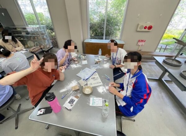 勾玉体験組は、ひたすら削る作業…!自分だけの勾玉を作りました。