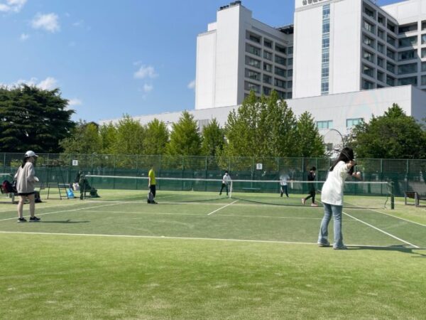 仙台キャンパス毎月恒例のスポーツ部。いつもは体育館でバドミントン、バレー、バスケ、卓球などをしておりますが、今回はテニスコートを借りてテニスをしてきました!!