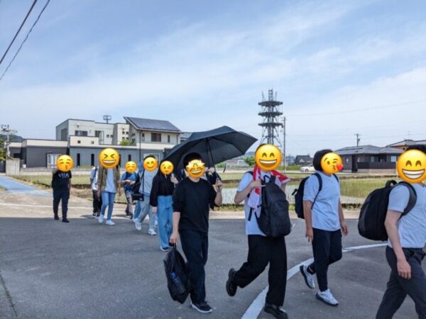 日傘を持ったりして暑さしのぎや日焼け防止対策をしっかり行ってました!女の子は女子力が高い…💦日焼け止めはもちろん必須のようです😊 炎天下の中クロスランド小矢部に向けて約30分間歩きました!よく頑張った💪