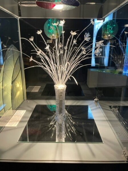こ~んな綺麗なガラスのお花やランプ、サンドブラストで加工した有名な映画のワンシーンを模したアートなどが飾ってあり、見ごたえたっぷりでした👏