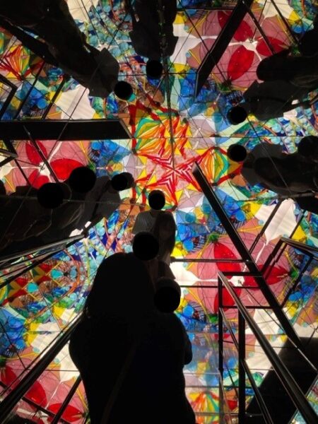 くるりんバスに乗ってガラス美術館へ! 入場料を払い、二階へ上がると巨大万華鏡「スフィア」が😧