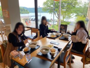 芦ノ湖が見えるレストランで昼食!
