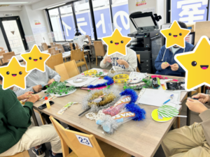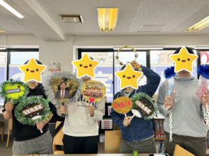 昨年の体育祭に使ったうちわを、緑組色に作り変えましたよ。