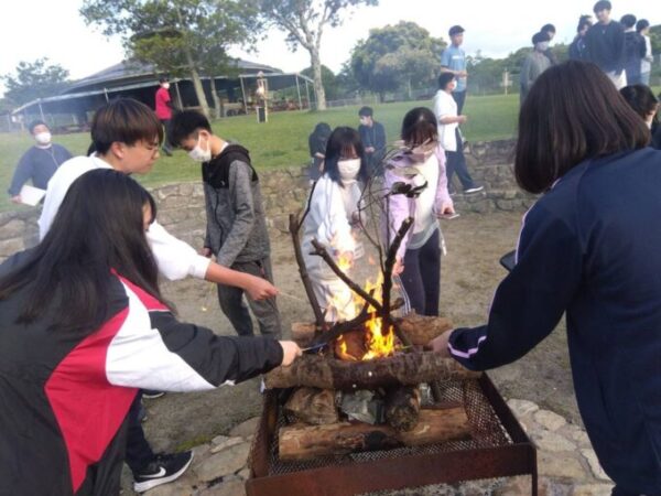 キャンプファイヤーを囲んで花火大会や、