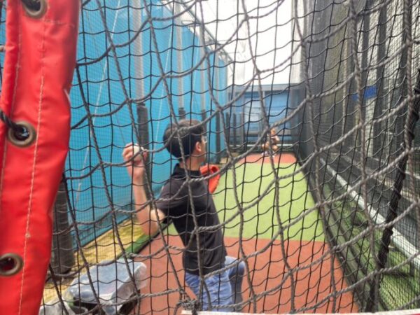 屋上ではキャッチボールやバッティングを楽しむ野球部の生徒さん⚾