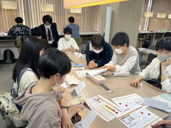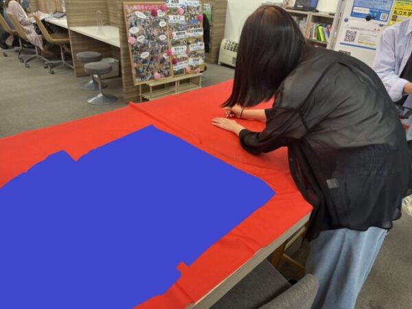 梅田キャンパスの個性あふれる旗を作るのに、Mちゃんが