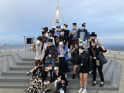 ↑修学旅行で他のキャンパスの生徒たちと撮った集合写真。