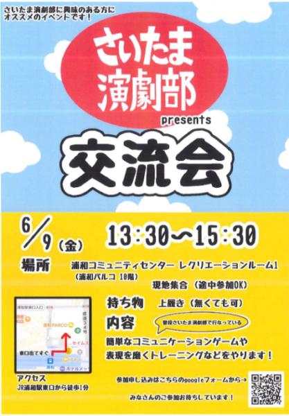 本日はさいたま演劇部の活動と交流会についてのお知らせです♪