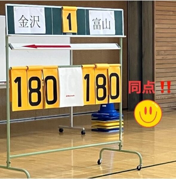 ラストの競技は台風の目。この時点で、金沢150対富山127で金沢がリード。どうする?富山。