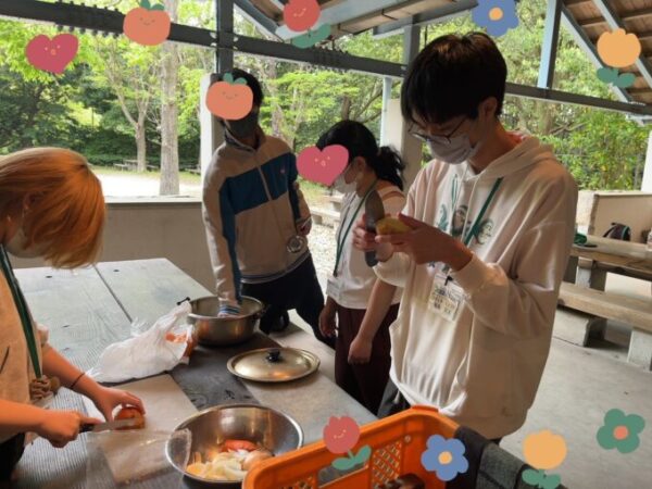 班に分かれ、野菜を切ったり、お米を研いだり、火の管理をしたり・・・✨