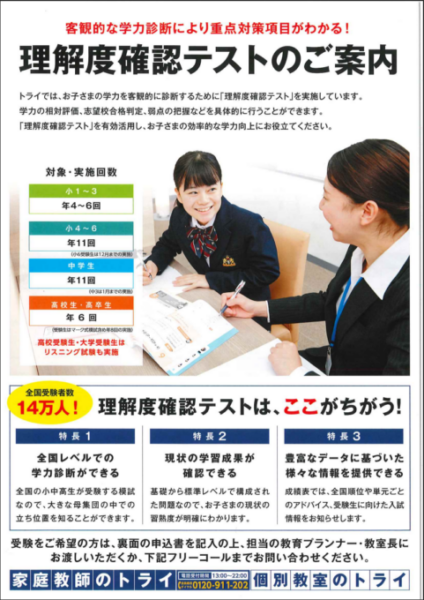 トライでは、希望制ですが、定期的に理解度確認テストを行っています。