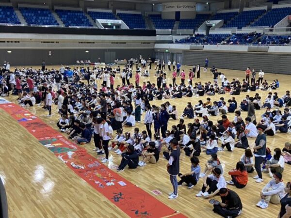 最初は全キャンパスの全員が体育館に集まり開会式です!