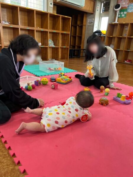 お母さんが工作などをしている間に赤ちゃんをあやしたりしました。