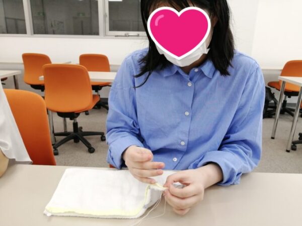 ハンドメイドサークル中にタオルを持参し、キャンパスで使用する雑巾を