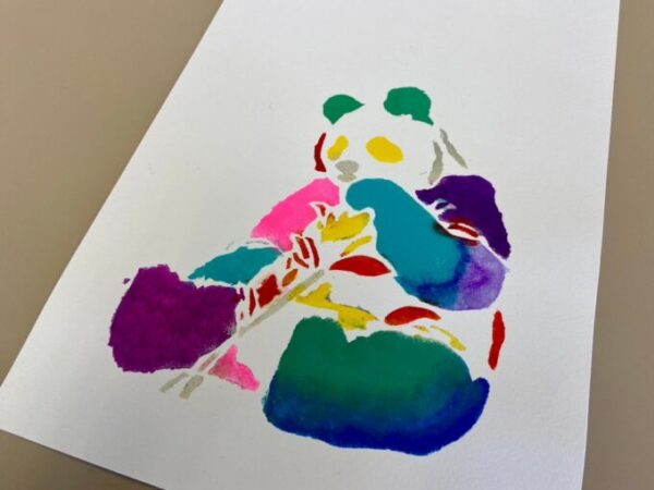 その上から絵の具を付けてポンポンと塗り付けていきます〇