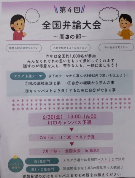 全国弁論大会 3年生の部 が開催されます。