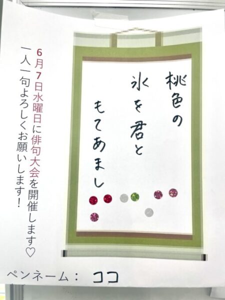 6月21日水曜日に「俳句大会 先生の部」の結果発表がありました(*^^*)