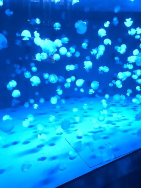 パノラマ水槽のクラゲは周りの照明の効果もあって幻想的です!