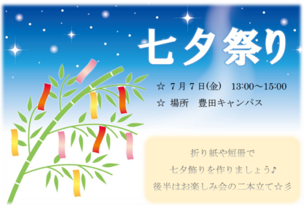 キャンパスのみんなには事前に短冊を配布するので、願い事を書いてスタッフに手渡してください😊