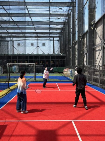 外では、バドミントンやバスケ、ボール投げなどなど!暑い中でしたが、体も動かし