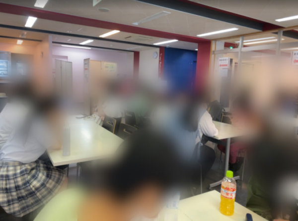 次に、学食スペースにて購買で買ったパンを食べたり、飲み物を飲んだりと自由に過ごしながら、「大学生気分」を満喫していました(^^♪