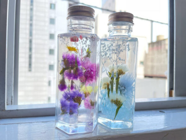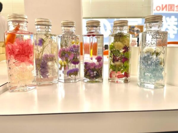 少しずつ丁寧に”ハーバリウムオイル”を流し込んでいきます!