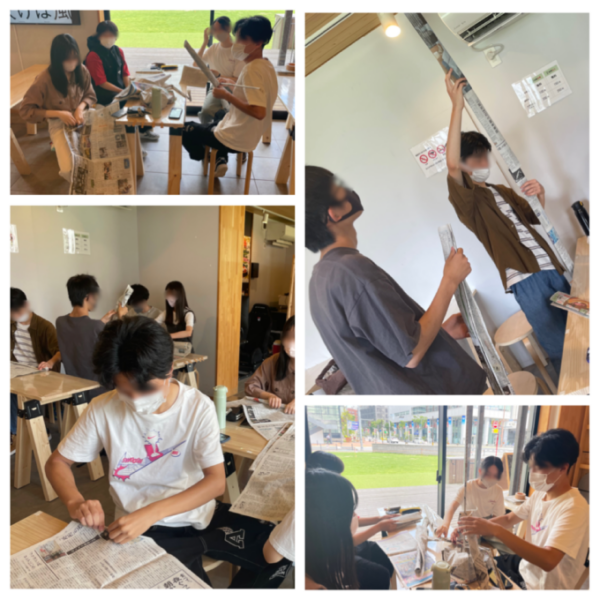 まずは二組に分かれ、新聞紙を使って制限時間内により高いタワーを作ったチームの勝利!!🗼🗯使うものは1日分の朝刊と5枚のテープのみ。ルールはそれだけ・・・😏