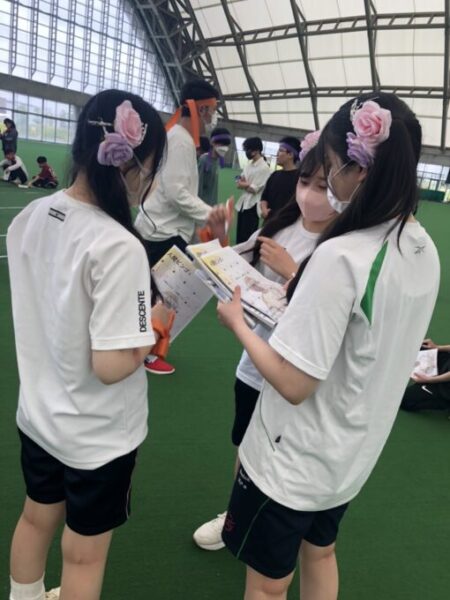 次はビンゴ大会!これは各々がオリジナルのビンゴカードを作り、その内容に当てはまる人に名前を書いてもらうビンゴでした。しかしキャンパス内では内容に当てはまる人がなかなかいません😱